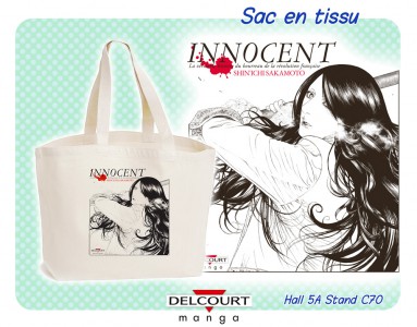 Pour l’achat du premier volume de la série Yamada & the Seven Witches ainsi que deux autres mangas de l’éditeur, vous aurez le droit de repartir chez vous avec un poster exclusif ! Vous retrouverez également les habituels badges des séries de l’éditeur telles que Alice in Borderland ou Liselotte et la Forêt des Sorcières, des cartes postales ou des livrets. Vous aurez aussi le choix entre plusieurs motifs pour vos sacs, plastiques ou tissus comme celui portant sur Innocent !