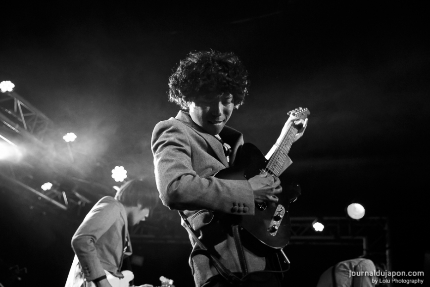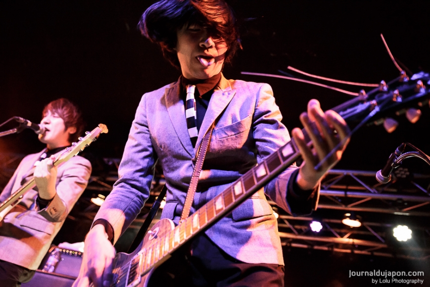 Si, en interview, c’est bien Roy qui a drivé les réponses – dans son rôle de chanteur et leader – le quatuor prend tout son sens sur les planches de la Boule Noire, et c’est Jim qui explose métaphoriquement son costume propret avec un sourire bigger than life, cherchant du regard à entraîner la foule avec lui. Ce qu’il fait sans aucun mal d’ailleurs, tant son énergie est communicative. Qu’il s’agisse de la foule des Eurockéennes ou de celle, intimiste et clairsemée, de la Boule Noire, c’est la même énergie qui passe de la scène vers les spectateurs, la même bonne humeur communicative : des Japonais sont en train de nous faire revivre un moment d’histoire du rock’n roll. Pour peu, on se croirait face à un Marty Mac Fly pour un Retour vers le Futur Passé, pour replonger dans le rock américain et endiablé des années 60, qui s’avère toujours aussi efficace.