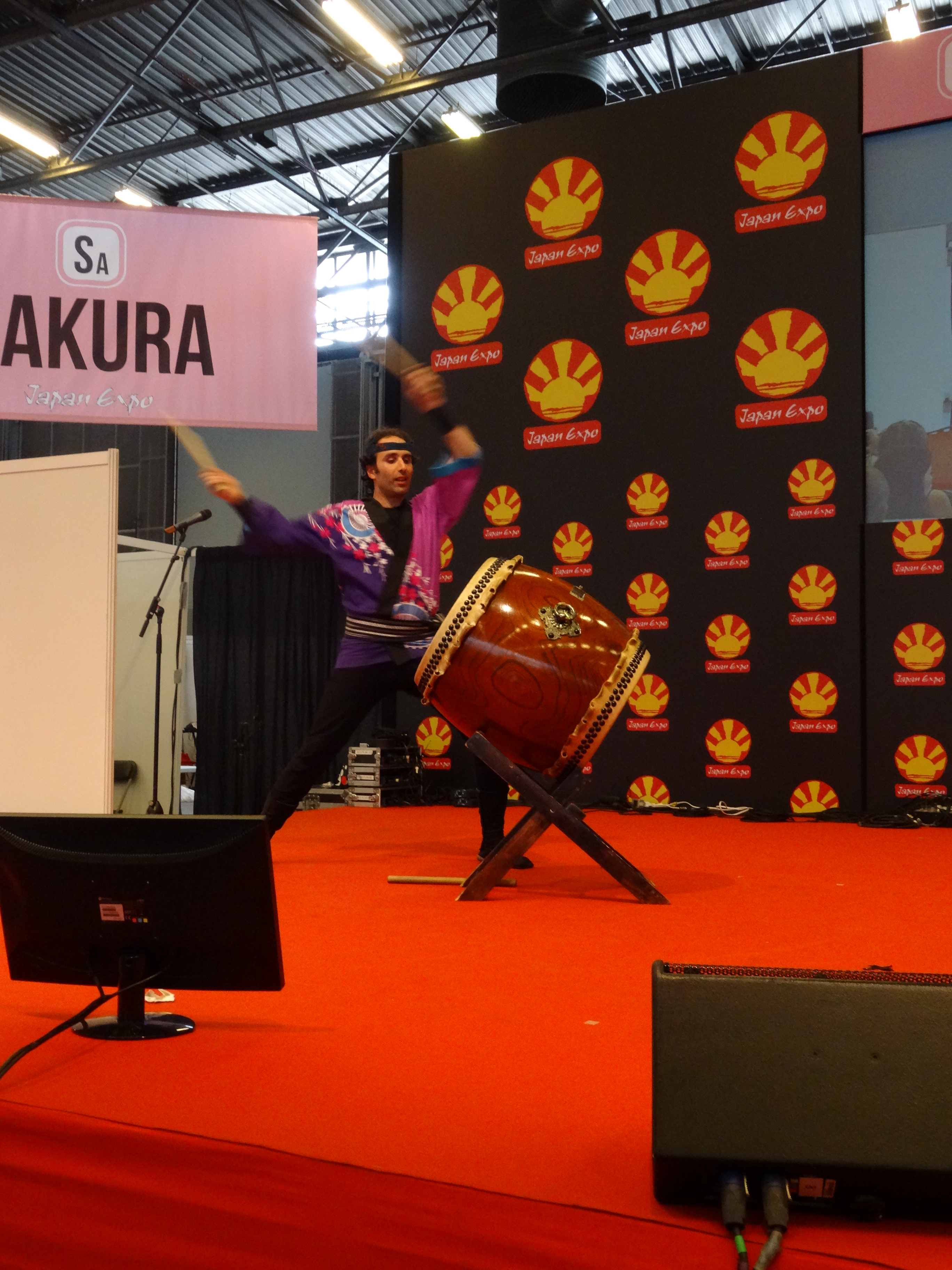 Le vendredi après-midi sur la scène Sakura, sous l’appellation « Les arts traditionnels japonais » nous avons ainsi pu assister à une présentation sur les tambours taiko et la danse awa odori, au centre des fêtes de quartiers populaires au Japon.