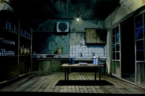 A l’âge vénérable de 83 ans, Shichirô Kobayashi a discrètement laissé sa trace dans les décors de nombreuses séries, comme l’Île au Trésor, Ganba no Bôken, Rémi sans Famille et plus récemment Berserk ou Nodame Cantabile. Il a d’ailleurs créé sa propre société spécialisée dans la réalisation de décors à la main, en 1968, laquelle sera finalement dissolue en 2011. Depuis, il occupe son temps en enseignant, à l’Université de Design de Kobe, depuis 2008, et en s’adonnant à sa plus vieille passion, la peinture. Si son style actuel est plutôt abstrait, ce dernier a connu de nombreuses transformations durant sa carrière, sa passion et son travail s’entre-mêlant sans fin : « J’ai continué de peindre tout en faisant mon travail de directeur artistique. Mon dessin, à l’époque, était plus sauvage, imprimé du fauvisme. Chaque jour était un combat, à l’époque, et je faisais de mon mieux pour travailler tout en peignant. C’est vrai qu’à l’heure actuelle, je fais de l’art un peu abstrait, moderne. Que je travaillais dans l’animation, j’ai fait du réalisme, de l’onirisme, et ce n’est pas parce que je suis à la retraite que j’ai arrêté de vouloir explorer de nouvelles voies, de tester des choses. J’emprunte un nouveau chemin pas à pas, avec mon vécu et mon âge. »