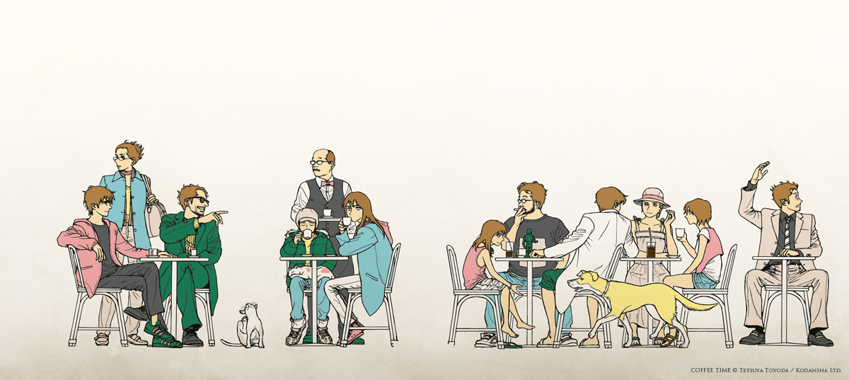 Ces six récits poussent à réfléchir sur la société nippone, faisant de Goggles un précurseur de Poison City ou de Unlucky Young Men, mais TOYODA n’oublie jamais de rire et de faire rire : ses œuvres ne sont jamais déprimantes, l’humour étant plus là pour faire sauter de nombreux verrous. On s’amuse et on relativise alors le quotidien en savourant quelques moments de légèreté salvateurs comme dans Coffee Time. Avec des mini-récits d’une dizaine de pages, le mangaka évoque autour d’une tasse de café les hasards de la vie, les rencontres improbables qu’elle nous offre et des liens qui en découlent, le caractère parfois incongru et farceur de notre destin… la vacuité de vouloir lutter contre, aussi.