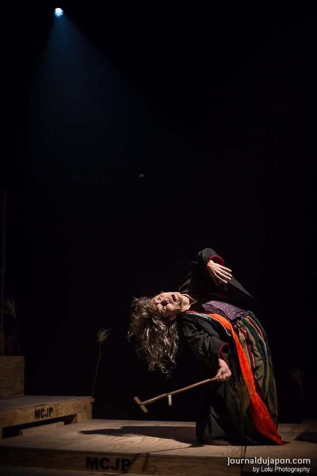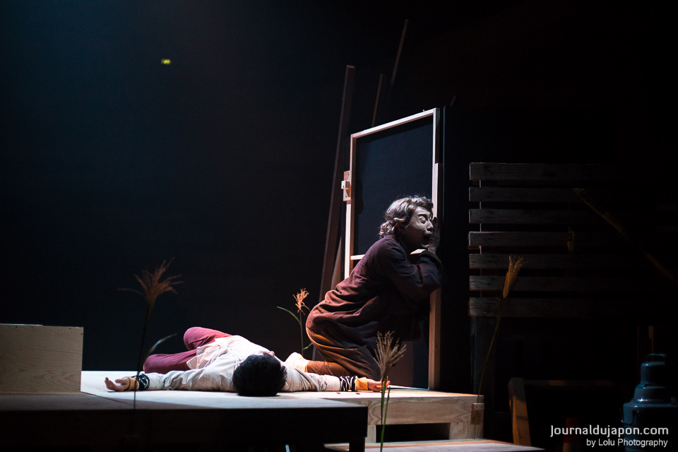 Outre ces détails, le duo aura fait un vrai travail de fond sur les dialogues, tantôt moderne, tantôt fidèle au texte original, mais également au niveau de la mise en scène et de l’éclairage, particulièrement réussis : si le crépuscule est superbement retranscrit, l’orage et ses éclairs le sont tout autant. Pourtant, c’est cette fameuse scène de danse au clair de lune entre l’ogresse et son ombre qui restera la plus saisissante. Un vrai instant de poésie, interprété tout en retenue et en finesse par Yuya Ogaki qui a d’ailleurs reçu un prix pour ce rôle. D’une manière générale, sa prestation est remarquable de justesse, oscillant entre la tendresse et l’horreur.