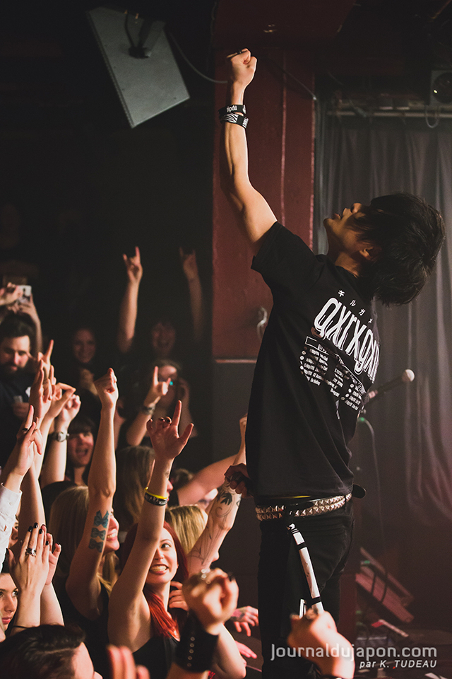 Les membres du groupe ont eu l’air de s’éclater sur scène, Satoshi (chanteur) et Nii (guitariste) ayant un don bluffant pour mettre l’ambiance dans la salle et ce, dès le premier titre du concert. Une salle avec une ambiance très festive donc où les headbangs étaient rois et où la foule chantait et s’amusait tout autant que les artistes.