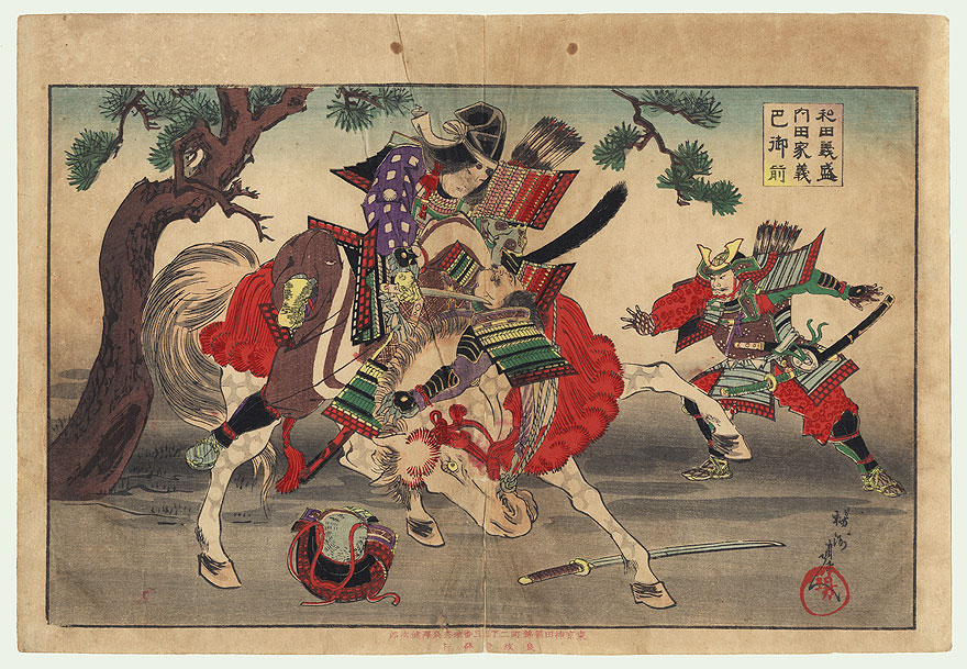 Tomoe GOZEN (1161?- 1184?) est la seule femme samouraï du livre. Cette princesse belle et forte mena des batailles et décapita même un assaillant. Même si différentes versions de sa vie existent (morte lors de la bataille ou capturée par le clan ennemi, mariée, mère d’un enfant puis entrée dans les ordres, ou suicidée avec dans ses bras la tête de son amant dans la mer du Japon), elle est passée à la postérité : héroïne de manga, d’anime, de jeu vidéo. Son histoire permet aussi de mettre en lumière le rôle des femmes dans ces guerres : des tests génétiques ont en effet montré qu’un tiers des combattants étaient des femmes.
