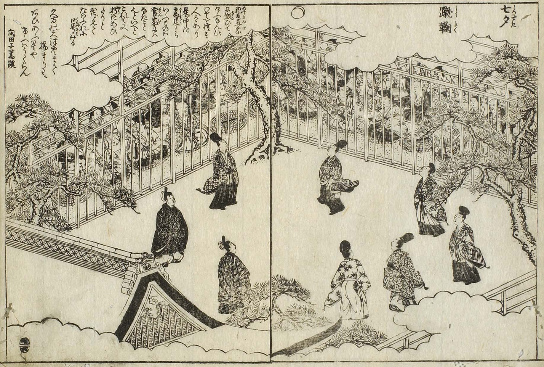 Partie de Kemari (« Tanabata Kemari », Récit illustré sur les jardins renommés de la capitale d’Akisato Rito, 1799).