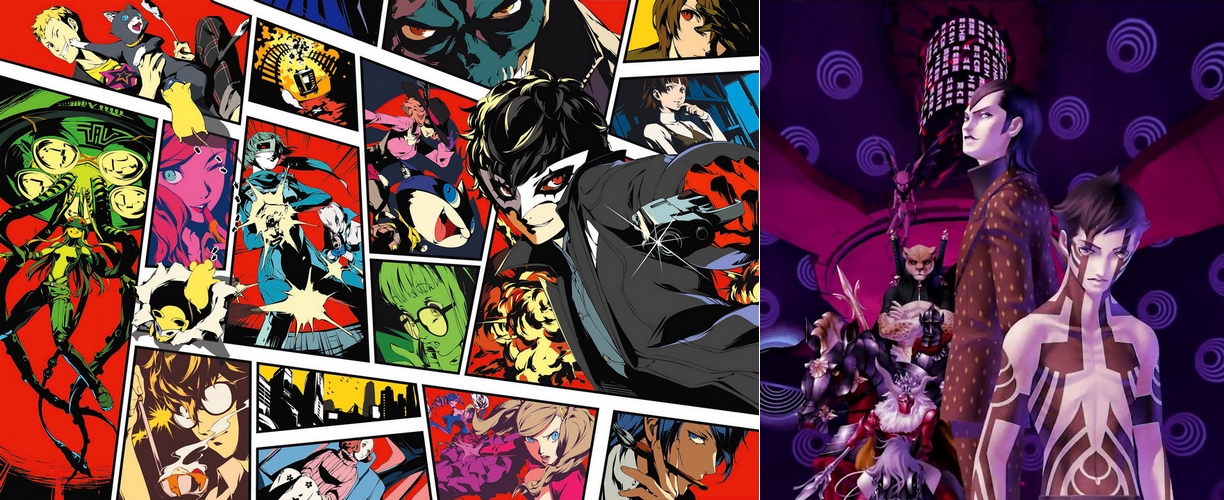 Persona (à gauche, le 5ème volet), spin-off qui vole la vedette à la saga Shin Megami Tensei (à droite, le 3 : Nocturne)