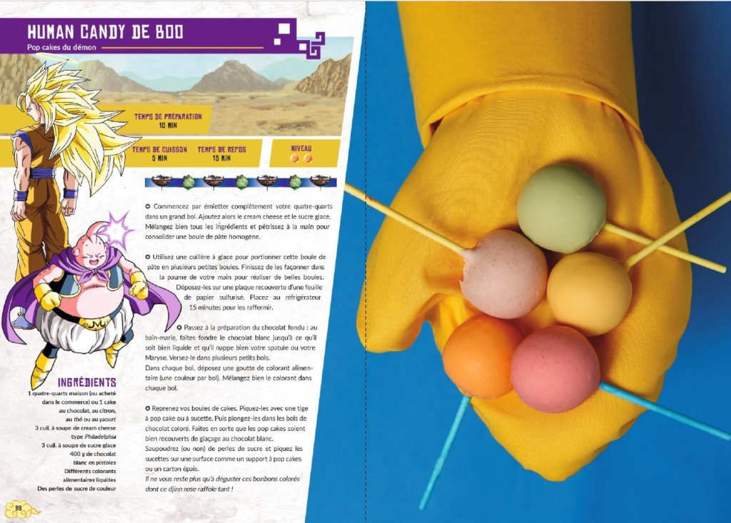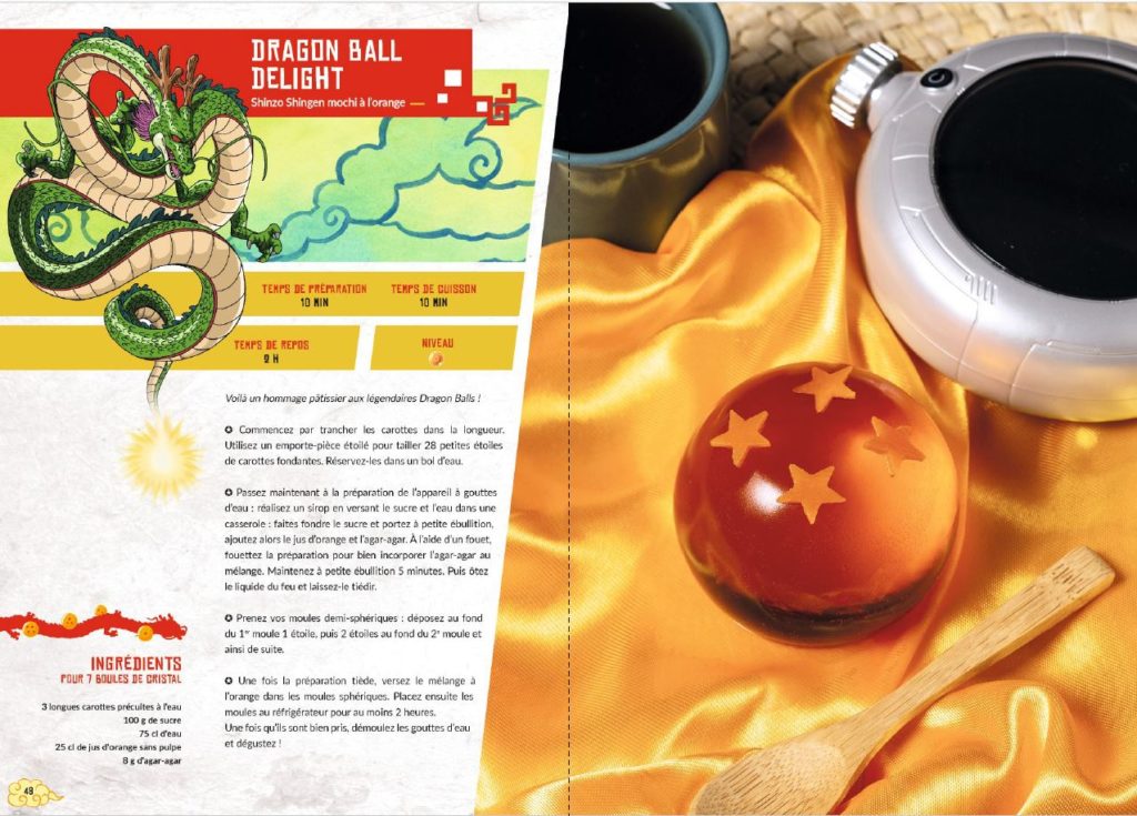 En fait, les licences précédentes je les ai travaillés avec Hachette (Star Wars, Astérix, Assassin’s Creed…) et ce ne sont jamais des Gastronogeek. Ils sont pensés par moi, conçus comme un Gastronogeek mais c’est en réalité toujours adapté à la licence. La mise en page est donc totalement différente ici, plus Dragon Ball.