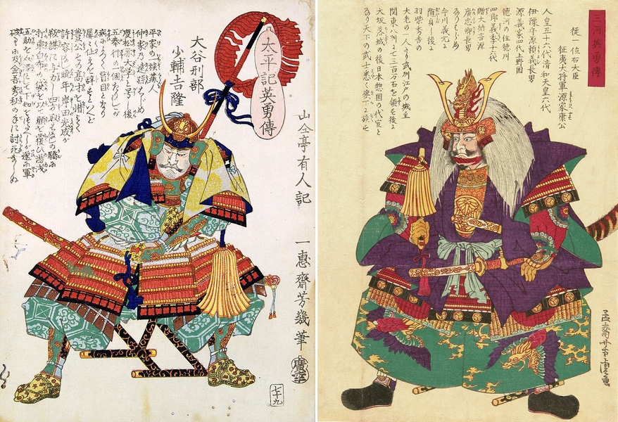 Estampe de Ôtani Yoshitsugu par Utagawa Yoshiiku et estampe de Tokugawa Ieyasu par Utagawa Yoshitora
