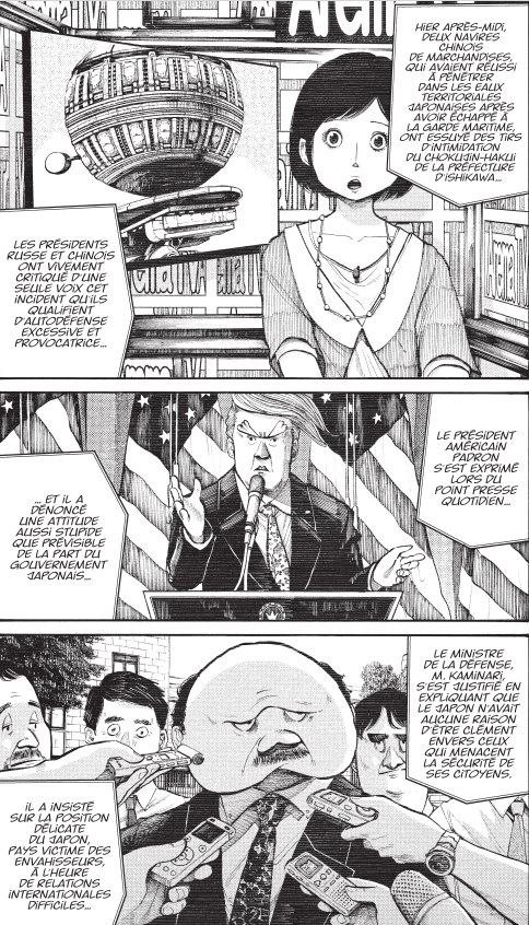Après, oui, sous couvert de SF, le manga traite de nombreux sujets : critiques des médias, réseaux sociaux et politiciens.