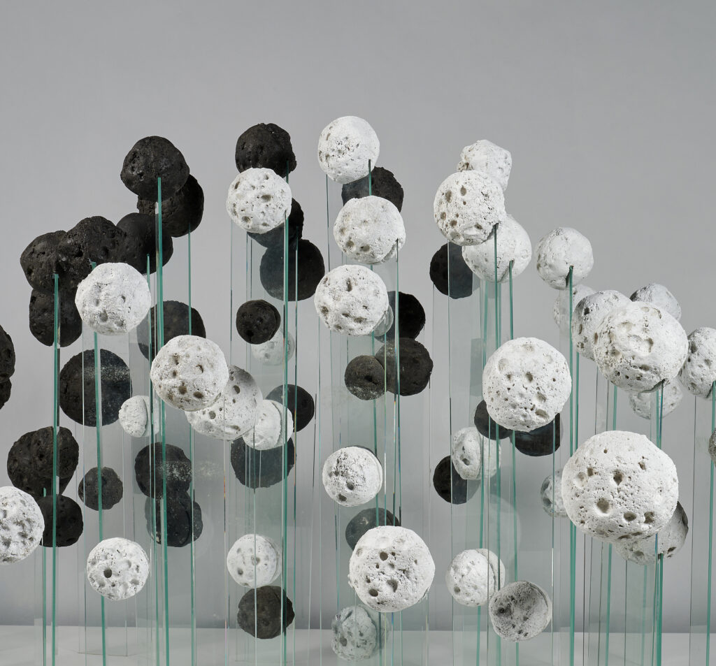MSS : Il joue constamment sur les contrastes, à mon sens c’est en partie cela qui rend les œuvres mobiles. Il remet en question la nature même des éléments naturels. Il oppose le blanc et le noir, la pesanteur et la légèreté, les éléments naturels et les sciences, la rigueur et l’abstraction, les lignes et les courbes.