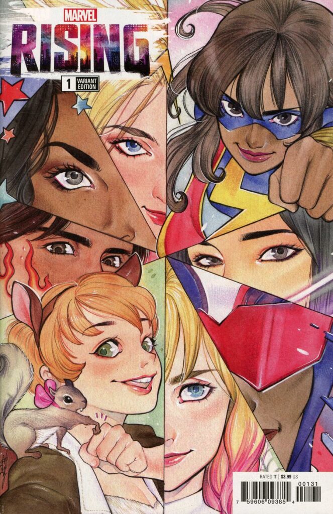 Pour revenir aux comics, c’est Adi Granov, dessinateur bosnio-américain, accompagné de son épouse, qui mènent Peach Momoko, à la suite de leur rencontre à la Comic-Con de Tôkyô, à illustrer ses premières couvertures de super-héros en 2019 aux éditions Marvel (une variant cover pour le premier numéro de Marvel’s Rising), puis pour des cartes à jouer super-héroïques de la marque Upper Deck. Elle signera ensuite en 2020 un contrat d’exclusivité avec la firme et enchaîne les illustrations de couvertures, toutes plus réussies les unes que les autres. Son travail sera salué en 2021 avec la réception du prix Eisner et Ringo (prix récompensant les différents artistes de comics) du meilleur artiste de couverture.