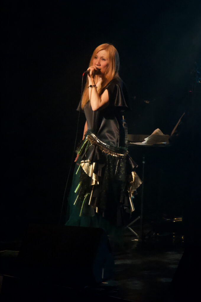 Elle nous a joué des morceaux de son nouvel album (Sora no Sphere), comme Kagami no Kuni et Terminal mais aussi les titres qui ont fait son succès tels que Voices (Macross Plus), qu’elle a interprété quasiment a capella, et Hiru no Tsuki. « Il est important pour le public de pouvoir retrouver les grands classiques comme il est important pour Akino de continuer à raconter son histoire », nous explique Cédric Biscay, directeur de Shibuya International (co-organisateur du concert).