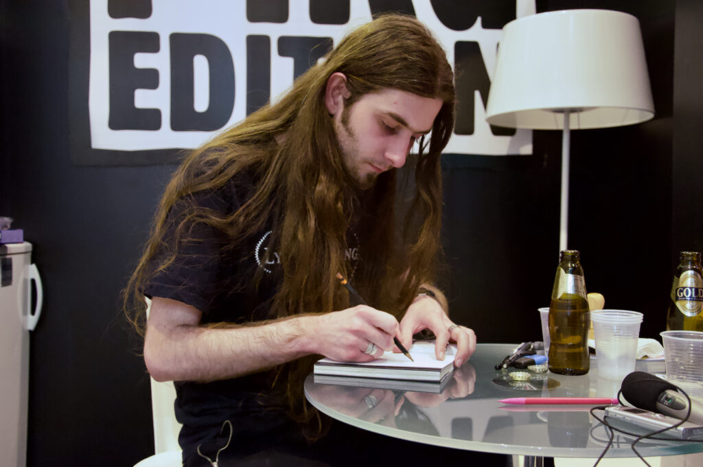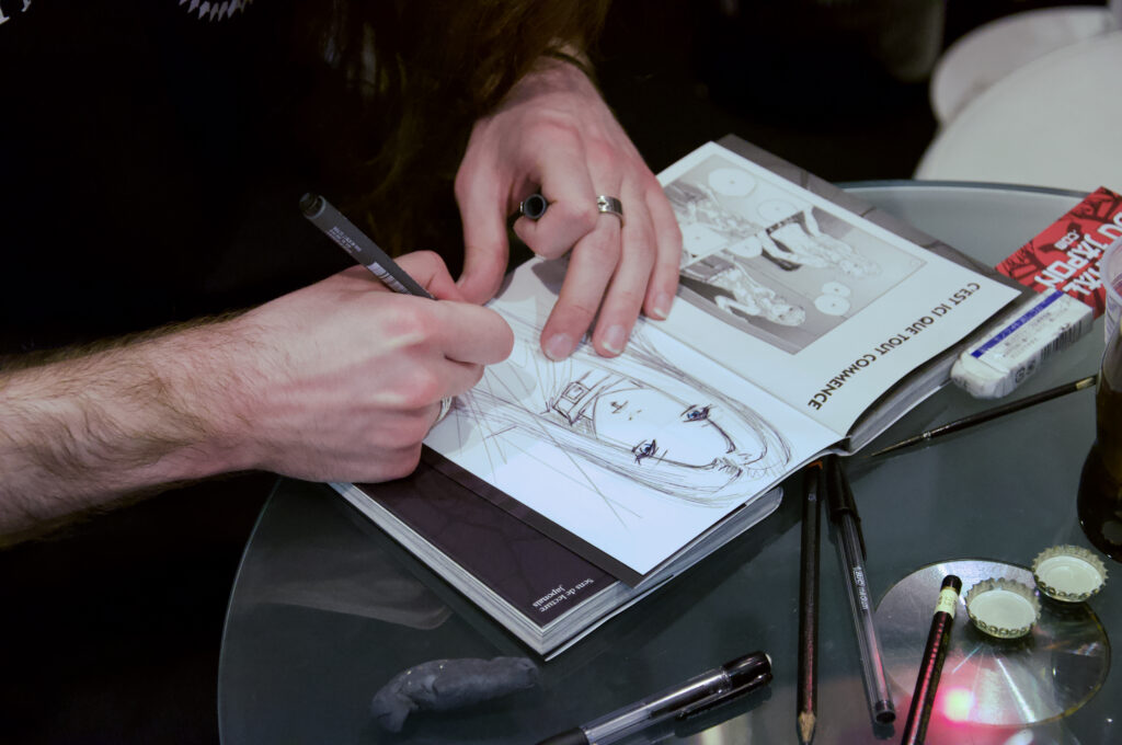 C’était vraiment cool, tranquille, j’ai eu un délai assez large pour me laisser le temps de me poser. Sur les premières pages et le premier chapitre, en réalisant que les dessins que j’étais en train de faire allaient être édité, j’ai quand même eu un peu la pression, puis petit à petit j’ai trouvé mon rythme. J’ai eu l’opportunité de travailler chez moi, ce qui m’a permis d’aborder les choses plus sereinement, d’écouter de la musique, voir mes potes, et finalement je me suis fait plaisir.