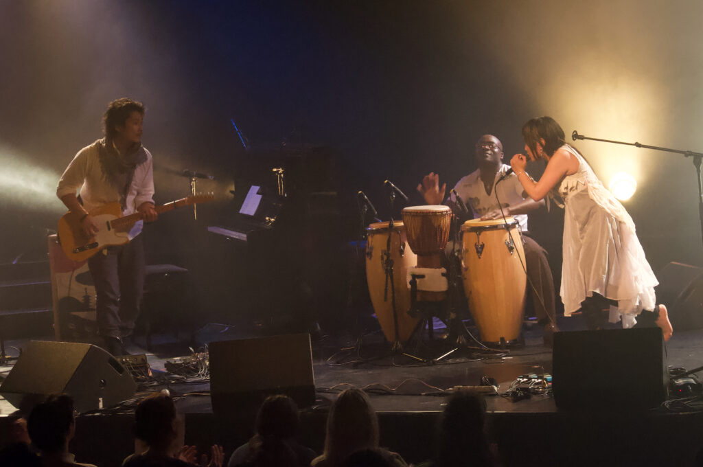 Nous les avons suivi de Paris, où ils ont fait la première partie d’Akino Arai, jusqu’à Toulon, où ils ont donné un concert au salon Mang’Azur. Chacun de ces concerts était très différent. Chiyako et Yuichiro nous expliquent : « Nous avons pour habitude d’adapter notre setlist à l’ambiance de la salle où nous nous produisons ». Ainsi, à Paris, jouant pour la chanteuse et musicienne pop-folk Akino Arai, ils étaient accompagnés par Wilfred, un percussionniste africain, offrant un spectacle dansant et festif.