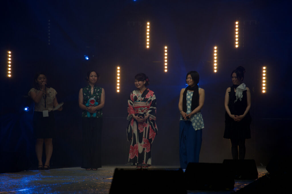Cette année, Japan Expo a organisé un défilé cosplay spécial en l’honneur du studio CLAMP, venu fêter son 20e anniversaire à Paris. Les mangakas, Nanase Ōkawa, Mokona, Tsubaki Nekoi et Satsuki Igarashi, étaient non seulement jury de ce concours mais ont également pu remettre les lots aux gagnants. Compte tenu de leurs hésitations pendant les délibérations, ce défilé de qualité semble les avoir impressionnées. Après des discussions animées, elles ont finalement récompensé six cosplays au lieu de cinq. Le prix supplémentaire revient à Michel et Alison, le couple qui incarnait un Shaolan assorti à la robe couronne de Sakura-Hime.