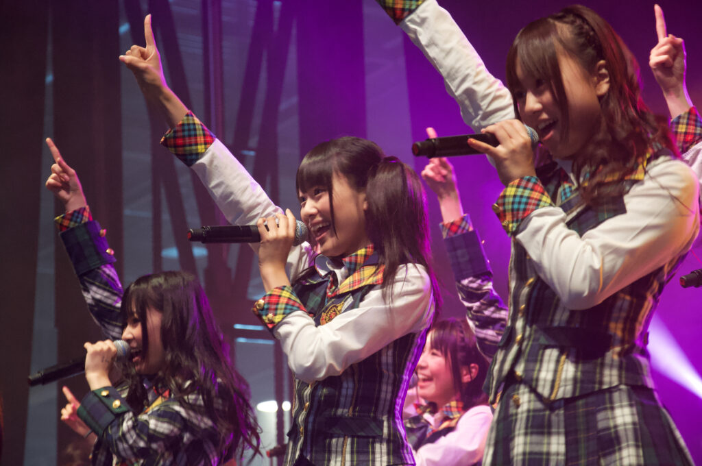 Dès que les lumières s’éteignent, le public acclame les jeunes chanteuses d’AKB48. Petites jupes volantes, sourires au lèvres et micros en main, les quinze idols s’alignent et entament leur chorégraphie vêtues de leur uniforme d’écolière. Petit à petit, la salle se remplit. De plus en plus de mains s’agitent dans les airs répétant scrupuleusement les mouvements des artistes. « On espère que les fans seront aussi réceptifs à notre spectacle qu’au Japon et qu’on sera accueillies avec la même chaleur », nous confiaient Minami Minegishi, Rie Kitahara et Rino Sashihara, trois des recrues du groupe AKB48 sélectionnées pour venir en France, avant de monter sur scène (cf. notre interview) Pari gagné pour les quinze idols qui ont envahi la scène du JE Live House vendredi 3 et samedi 4 juillet.