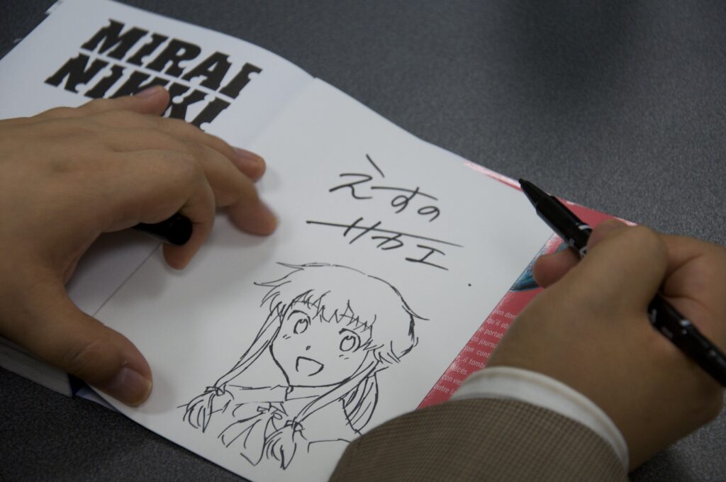 Sakae Esuno : Je me concentre sur MIRAI NIKKI pour l’instant, mais il y aura d’autres projets après.
