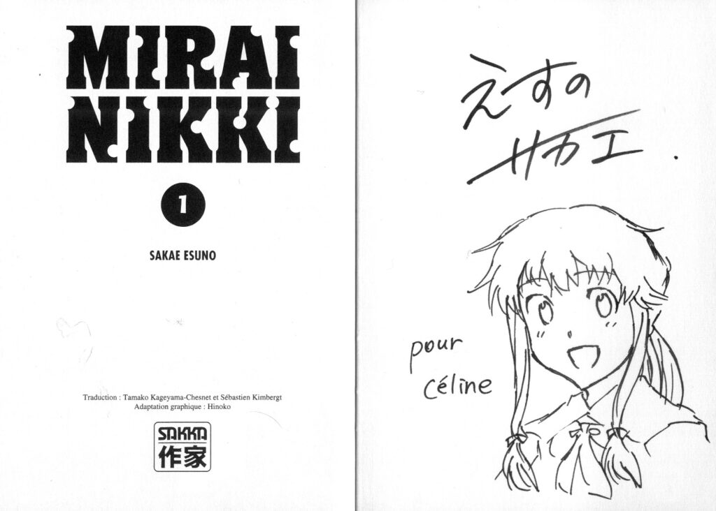 Les deux premiers tomes du shônen MIRAI NIKKI sont disponibles depuis le 17 juin chez Sakka/Casterman en France. Retour sur ce manga choc de Sakae Esuno, que nous avons rencontré à l’occasion de Japan Expo 2009.