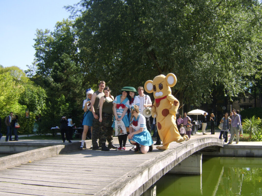 Dimanche 14 septembre de l’année dernière, on traverse le parc de Bercy en partant du palais Omnisport. Le soleil tape. Vingt minutes plus tard, on approche de la cour St-Émilion et on aperçoit Fumoffu, la mascotte de la série d’animation japonaise Full Metal Panic !. Sa tête énorme dépasse des buissons. On le suit. Il nous amène droit sur une foule de cosplayeur.euses qui se préparent à défiler sur le petit pont. De l’autre côté, une dizaine de stands de fanzines, des dessinateur.ices et scénaristes amateur.es qui s’inspirent de la bande dessinée japonaise. On est tombé par hasard en plein cœur du festival de la bande dessinée Delcourt-Harajuku.