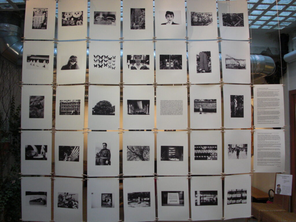 Un sujet qui nous intéresse ici tout particulièrement puisque le centre accueille, du 3 au 20 novembre 2009, une exposition collective en l’honneur d’Osamu Tezuka. L’occasion était belle : celui qu’on considère souvent comme le « père » du manga moderne aurait fêté cette année ses 80 ans s’il était encore de ce monde. Comment témoigner de son respect envers l’œuvre d’une personnalité aussi marquante ? À cette question, les artistes conviés pour cette exposition ont répondu de moultes manières. Il y a ceux qui revisitent les personnages phares du créateur japonais en les « relookant » comme Izumi Idoia Zubia (photo ci-dessus). Il y a ceux qui préfèrent travailler la matière et questionnent ainsi le rapport de ces héros au réel. Clotilde Perrin, dont les travaux se focalisent sur l’illustration en relief, propose par exemple ici un masque de Tetsuwan Atom alias Astro Boy. Sans oublier ceux pour qui l’influence du maître est plus diluée, plus éparse, mais tout aussi prégnante. Miki Nitadori offre ainsi un panneau massif de tirages photographiques intitulé En cherchant l’Arbre au Soleil (photo ci-dessus), manière d’interroger la présence d’une œuvre dans le Japon d’aujourd’hui.