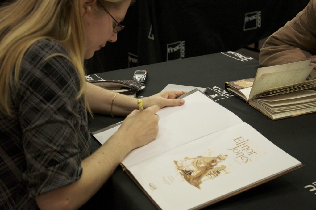Aurore dédicace les premiers albums d’Elinor Jones, sorti en avant-première à la Fnac de Nantes ce mercredi 20 janvier. Dans la file d’attente, certain.es sont des adeptes de mangas, d’autres sont plutôt des amateurs de BD franco-belge. Mais ielles sont avant tout des lecteur.ices qui aiment suivre les aventures de leurs héros au format bulles. Avec leur BD Elinor Jones, qui sortira le 27 janvier aux éditions Soleil, Algésiras (scénariste) et Aurore (dessinatrice) vont satisfaire ces deux publics. Nous sommes au rendez-vous mensuel Bulles de Mangas organisé par l’association nantaise Univers Partagés. Cet évènement a pour but de promouvoir les auteur.ices de bande dessinée qui tirent leurs influences dans le manga à travers une rencontre public et une séance de signatures.