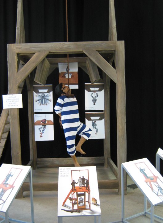 Juste à côté, une introduction ludique à la culture japonaise, le théâtre de marionnette Ô-Edo s’anime sous l’œil du spectateur. Dans la même salle, un criminel récalcitrant échappe à la pendaison. Kitano met ici en avant un sujet de débat au Japon : la peine de mort. Puis, au sous-sol, un tourbillon de couleurs saute aux yeux. Notre côté enfantin est titillé. C’est la partie « peintures 2008-2009 ». On y retrouve 24 tableaux, dont certains spécialement créés pour l’exposition, ainsi que quelques classiques que nous avions déjà pu découvrir, notamment dans les films du réalisateur comme le célèbre Hana-Bi (1997), film qui a reçu le Lion d’Or à Venise en 1997.