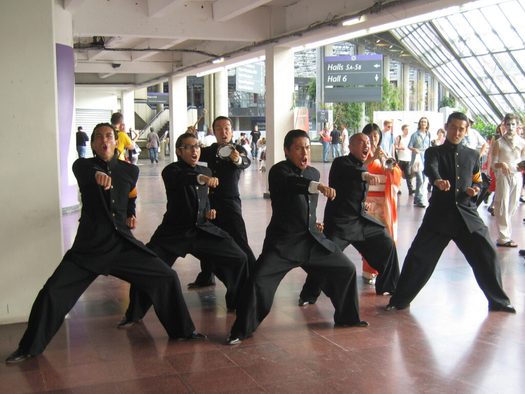 Survoltée, la troupe de supporters attendait avec enthousiasme les premiers arrivants et c’est au son des premières notes de l’instrument cuivré que retentissaient leurs encouragements : « Allez, allez, Japan Expo ! ». Courant, sautant, hurlant Takahiro et ses camarades partageaient leur énergie avec le public, qui, plutôt réceptif, leur répondait avec autant de punch.