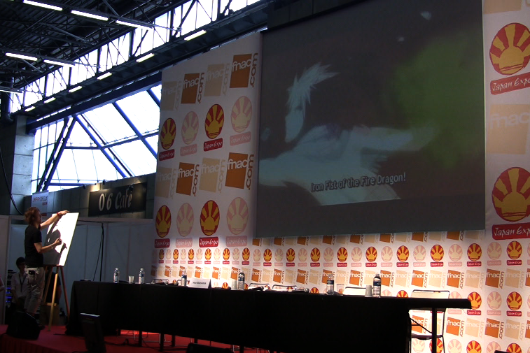 La conférence se conclut par un dessin en direct de Mashima-sensei représentant Natsu et Happy, moment que l’on a filmé pour vous :