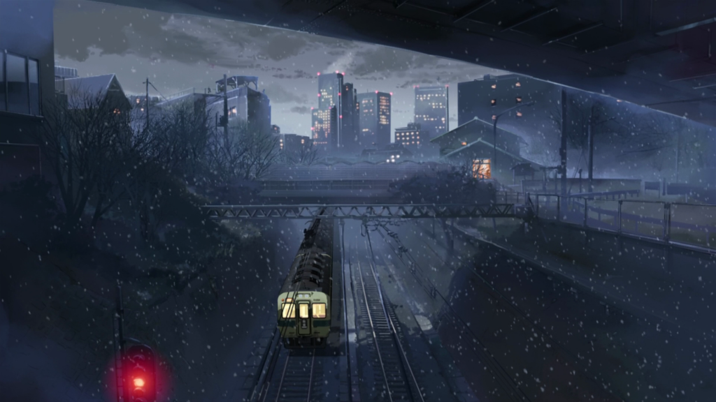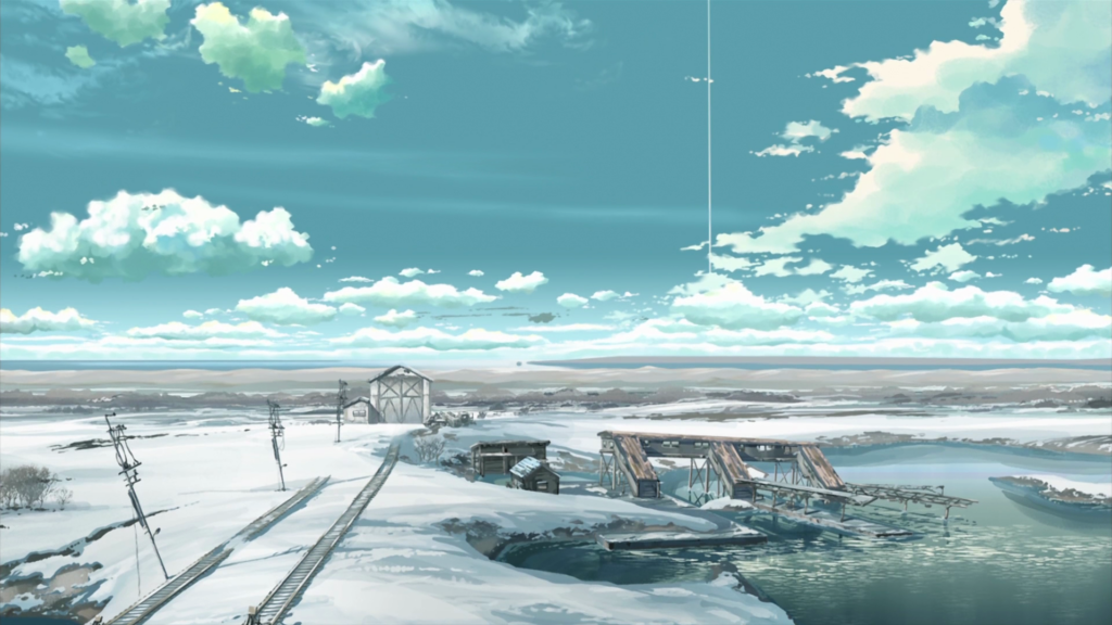 Sorti au Japon en mars 2007, 5 centimètres par seconde, considéré par certains comme le meilleur film d’animation japonais non dirigé par Hayao Miyazaki, est la seule œuvre longue de Shinkai qui n’intègre pas d’éléments surnaturels. Regroupement de trois épisodes, chacun d’entre eux suit un pan la vie du jeune Takaki Tôno et nous montre ses deux amours non consommés qu’il regrette au troisième épisode. L’histoire poétique et les décors somptueux − la Shinkai touch − donnent à l’œuvre un côté très mélancolique qui frappe encore plus que dans les autres travaux de Shinkai de part l’absence d’action.
