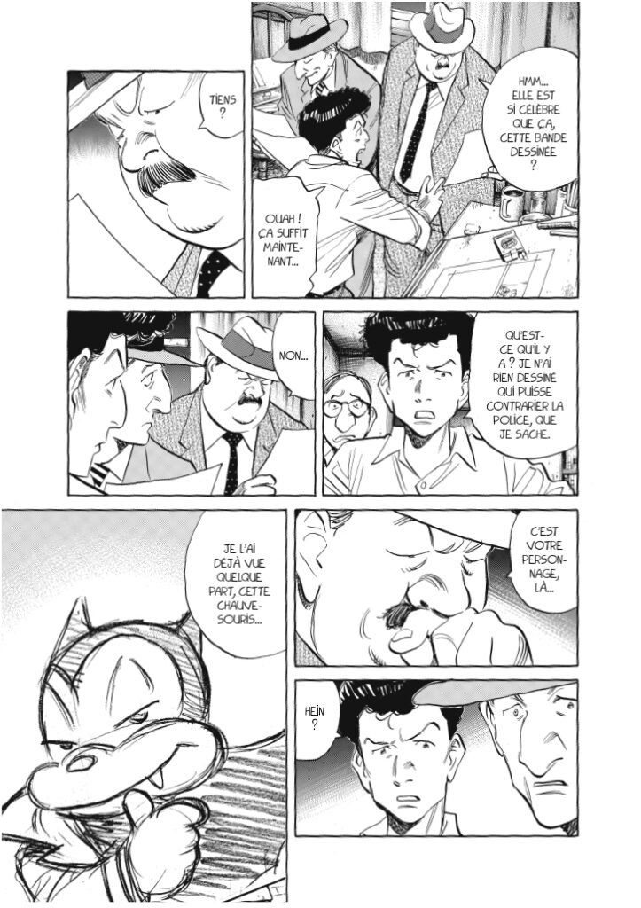Chaque période historique présente ainsi une ambiance et un intérêt propres. On est littéralement transporté d’un monde à un autre. Cela constitue à la fois un avantage et un inconvénient : si on est toujours intrigué et amusé de bondir d’une époque à une autre, ce passage se fait parfois trop brusquement, sans prévenir. On se trouve ainsi frustré de ne pas découvrir la suite de certaines histoires (même si on sait qu’Urasawa y reviendra plus tard) et le trop plein de nouvelles informations (présentation de personnages et d’intrigues inédites) nuit parfois à la lisibilité de l’intrigue. Dans le même ordre d’idée, le souci de véracité historique des deux auteurs se révèle parfois rébarbatif, notamment lors des dialogues politiques assez pointus sur le Japon d’après-guerre, qui peuvent rebuter le lecteur occidental, forcément moins calé sur ces évènements. A contrario, les passionnés d’histoire apprécieront de pouvoir saisir de nombreuses références plus ou moins voilées à des évènements marquants. Urasawa et Nagasaki jouent de notre recul historique actuel pour mélanger passé et présent, en évoquant par exemple les ambitions de Kennedy père dans le comics Billy Bat ou encore en faisant prédire à un chauffeur de taxi, dans les années 1960, que les États-Unis auront un jour un président noir…