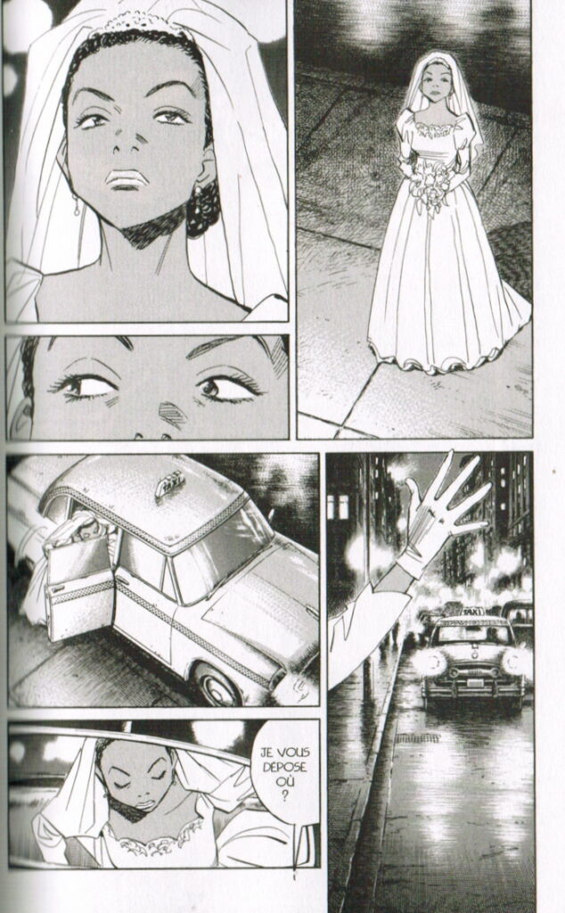 Ces sauts permanents entre les époques sont aussi l’occasion de raconter de multiples récits tranche-de-vie, un domaine dans lequel Urasawa est passé maître depuis longtemps. Les chapitres mettant en scène Randy Momochi, chauffeur de taxi new-yorkais, et deux mariés séparés par le racisme ambiant, sont ainsi particulièrement touchants, et mis en scène avec un brio inégalable (qui est là encore digne d’un véritable découpage cinématographique).