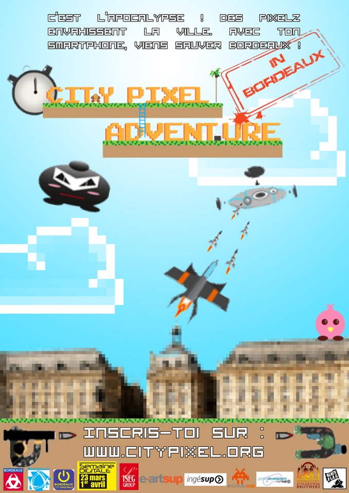 Le samedi 31 mars, nous avons pu assister à un étrange spectacle à Bordeaux. En plus de flashs code disséminés aux points les plus stratégiques du centre-ville, quelques cosplayers se promenaient nonchalamment dans les rues. Nous étions en fait en plein cœur de l’animation « City Pixel Adventure » qui proposait aux aventuriers modernes un grand jeu de piste dans Bordeaux. Et quel jeu de piste !