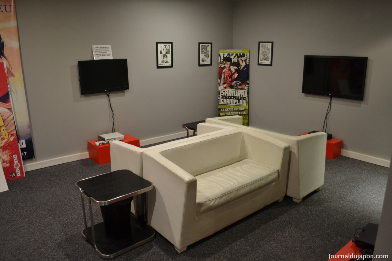 La deuxième partie de la boutique est un espace de lecture, qui comporte un salon avec des revues, du matériel de dessin, ainsi que des jeux de sociétés. Une bibliothèque contenant entre 8500 et 9000 volumes différents est à la disposition des visiteurs, ainsi qu’une salle vidéo avec des consoles et des jeux vidéo d’inspiration japonaise et une télévision branchée sur KZTV toute la journée.