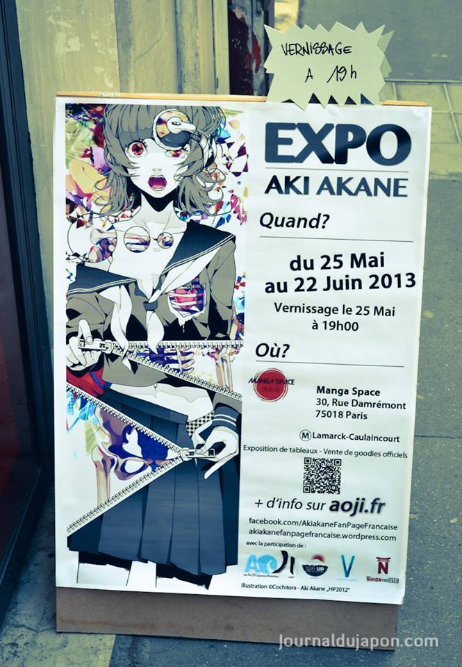 C’est Page, qui gère la fanpage française d’Aki Akane, qui a eu l’idée de monter une exposition. Elle m’a contacté via la page Facebook de Manga Space. Je ne connaissais pas beaucoup cette illustratrice. Je suis donc allé voir ce qu’elle faisait et ça m’a bien plu ! J’ai beau connaître la scène manga, je ne connais pas grand chose de la scène purement artistique japonaise. J’ai bien accroché à son univers assez décalé, autant qu’à sont style très moderne et à son utilisation des couleurs. »