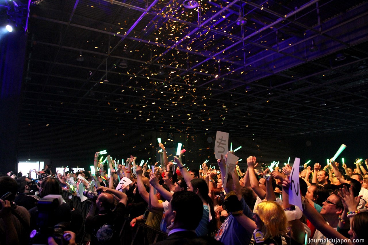 Des light-sticks vert s’allument partout dans la salle, et des fan-chants se font entendre.