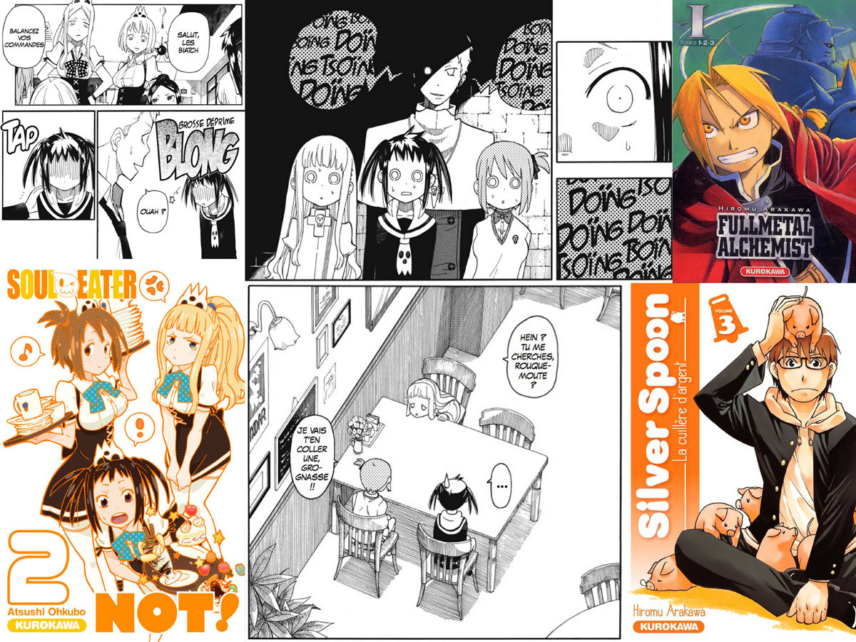 Deux choses, effectivement. Sur mon travail, non, parce qu’à ma connaissance Soul Eater n’est pas scantradé en français. Ce n’est pas une menace directe. Silver Spoon, sûrement, mais comme les scantrads sortent de l’anglais, ce serait une mauvaise idée de regarder, ça détourne de l’œuvre de base. C’est pas que je veux ouvrir la boîte de Pandore mais je n’y vois pas d’intérêt.