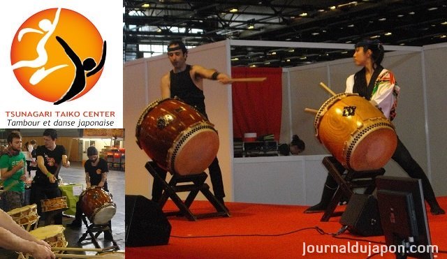 Sur la scène, un homme et une femme commencent une démonstration tonitruante, frappant en rythme chacun sur un énorme tambour en bois, avec des mouvements pleins d’énergie. C’est fort, c’est joyeux, ça prend aux tripes et au coeur, wow. C’est du Taiko, tambour japonais, par Cola et Ayuko Bonnan, fondateurs et professeurs du « Tsunagari Taiko Center »:http://www.tsunagari-taiko-center.com.
