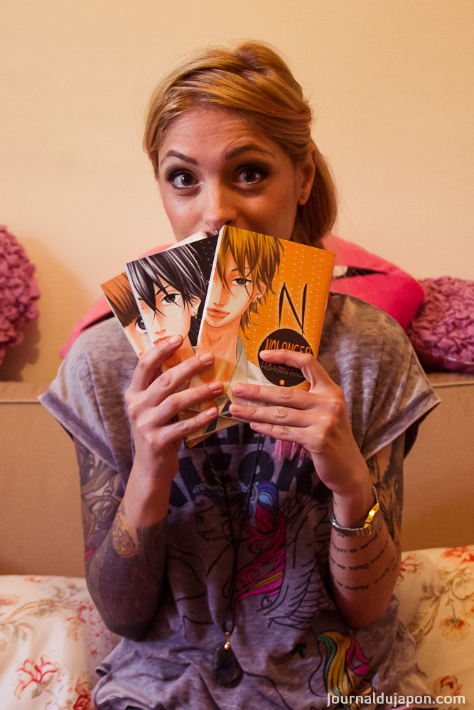 Forcément, malgré tout, comme je lis beaucoup de mangas, j’avais quelques appréhensions et quelques préjugés sur le shojo, qui est un style que je n’affectionne pas particulièrement parce que j’en ai beaucoup lu et parce que je trouve que c’est toujours un petit peu la même chose … donc ça m’ennuie. Mais ce titre, quand j’ai commencé en fait, j’avais vraiment envie de savoir la suite, de savoir ce qui allait se passer, et clairement je me suis aussi servie de mes expériences personnelles, des relations que j’ai pu avoir, amoureuses, enfin voilà … Finalement, ça va loin dans l’intimité de faire de l’adaptation parce que c’est toi, tes propres expériences.