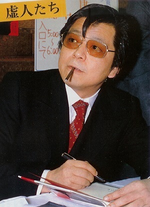 Yasutaka Tsutsui (à droite, en 1983) est surtout considéré comme le spécialiste japonais de la métafiction – un genre de construction narrative souvent rattaché au genre de la science-fiction, mais qui prend sa source dans les textes de « l’Oulipo »:http://fr.wikipedia.org/wiki/Ouvroir_de_litt%C3%A9rature_potentielle (les romans de Georges Perec ou d’Italo Calvino par exemple). La métafiction consiste à introduire dans le texte différents niveaux de fiction, par des procédés tels que la mise en abyme, le roman dans le roman, ou l’implication du lecteur en tant que héros du récit. Des « livres dont vous êtes le héros », en somme. Tsutsui a exploré ces pistes de différentes manières, notamment à travers ses nouvelles, dont certaines ont été écrites spécialement pour être « lues sur le web »:http://www.jali.or.jp/tti/en/short/short-index.htm.