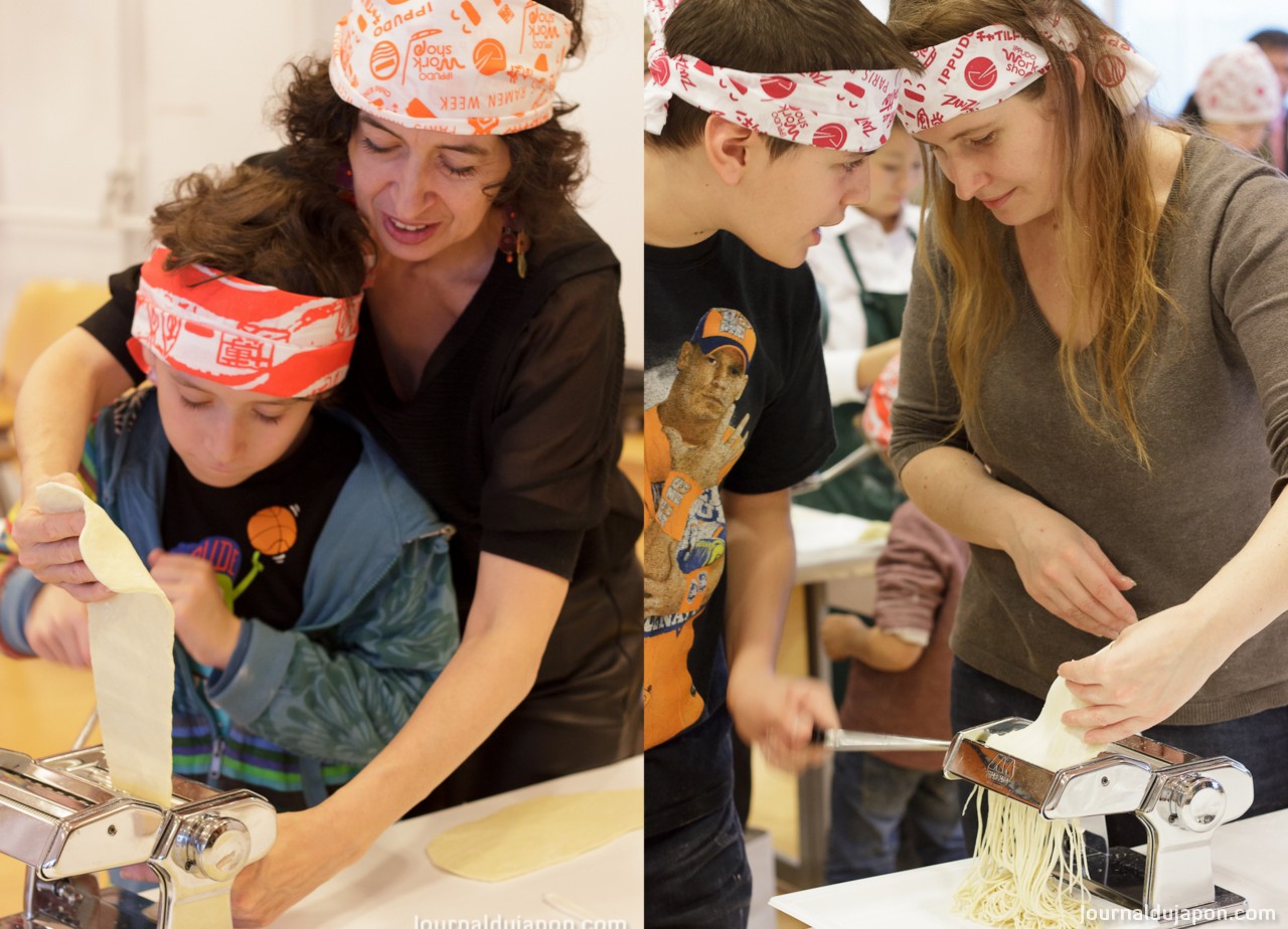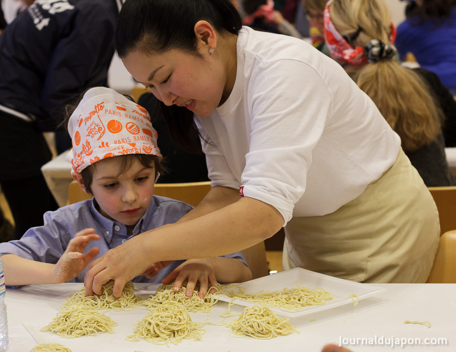 La PRW a ainsi été inaugurée par un atelier culinaire organisée par l’association japonaise Child Kitchen à la Maison de la Culture du Japon à Paris. Œuvrant depuis 2004 à Fukuoka, Child Kitchen met régulièrement en place ce genre d’activités, mais visite également des écoles : plus de 180 à l’heure actuelle, soit environ 17 000 enfants initiés à l’art du ramen ! La mission est simple : faire découvrir le plaisir de la cuisine en transmettant l’importance de la nourriture, le bonheur de partager un repas ensemble. Et quoi de plus convivial qu’un ramen ? La mère de Gabriel confirme « l’atelier permet de passer un bon moment ensemble ! C’est pas cher, c’est bon, et notre assiette nous fait voyager ! ».