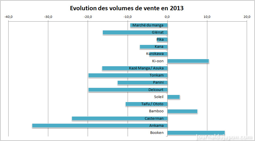 En 2013 la quasi-totalité des éditeurs ont vu leur volume de vente reculer, selon les chiffres Gfk.