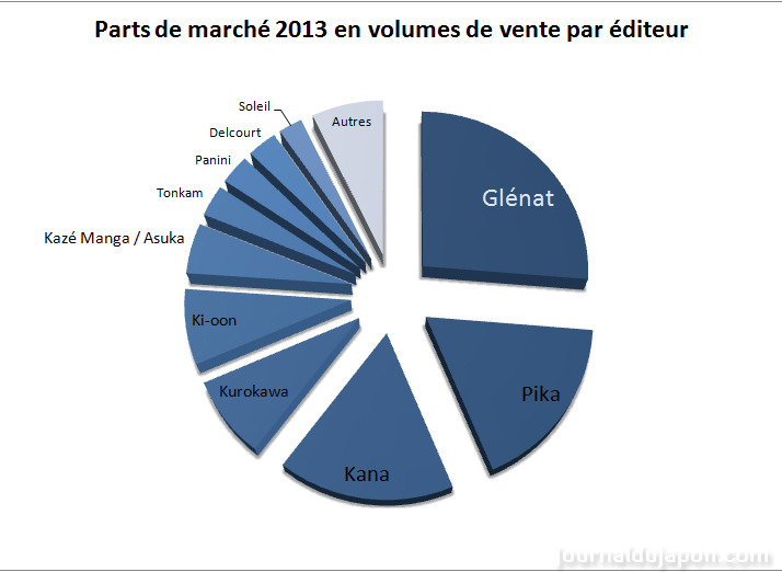 Ensuite on retrouve Doki-Doki et sa maison mère Bamboo, qui signe l’une des rares progressions : +7.5% de son volume de ventes. Lorsqu’on demande à Arnaud Plumeri, le directeur éditorial de Doki-Doki, pourquoi il fait partie des rares éditeurs en progression cette année, il évoque une publication restreinte, centrée sur quelques titres : « Déjà, notre credo est resté le même depuis des années, nous essayons de publier peu mais de publier bien : 4 ou 5 titres par mois. Et puis quelque part, nos bons résultats doivent avoir un rapport avec le choix de nos titres qui semblent parler aux lecteurs. Cela prouve que l’on peut avoir des résultats sans blockbuster au catalogue. J’espère que nos confrères limiteront un peu leur production en 2014, afin laisser souffler un peu le marché. »
