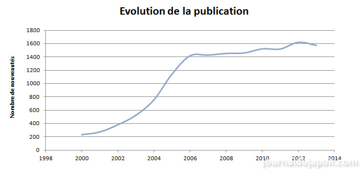 Il semble alors clair aujourd’hui que destituer ces best-sellers de leur vivant est impossible. Mais même leur remplacement dans quelques années à ce niveau de vente n’est pas évident non plus. « Les Naruto et One Piece ont atteint ce niveau de vente car ils ont pu se faire une place dans un marché qui était beaucoup moins chargé que maintenant. » précise Christel Hoolans. En effet, quand Naruto est arrivé en France, en 2002, il n’y avait que 377 sorties mangas cette année là, soit 4 à 5 fois moins que maintenant (cf graphique ci-dessous). Comme le conclut la directrice éditoriale de Kana, « ils seront sans doute remplacés par plusieurs séries middle-sellers, comme dans le marché de la BD par exemple, où les best-sellers ont tendance à chuter et les middle-sellers à se multiplier. C’est moins bien pour l’éditeur mais l’offre est plus diversifiée. »