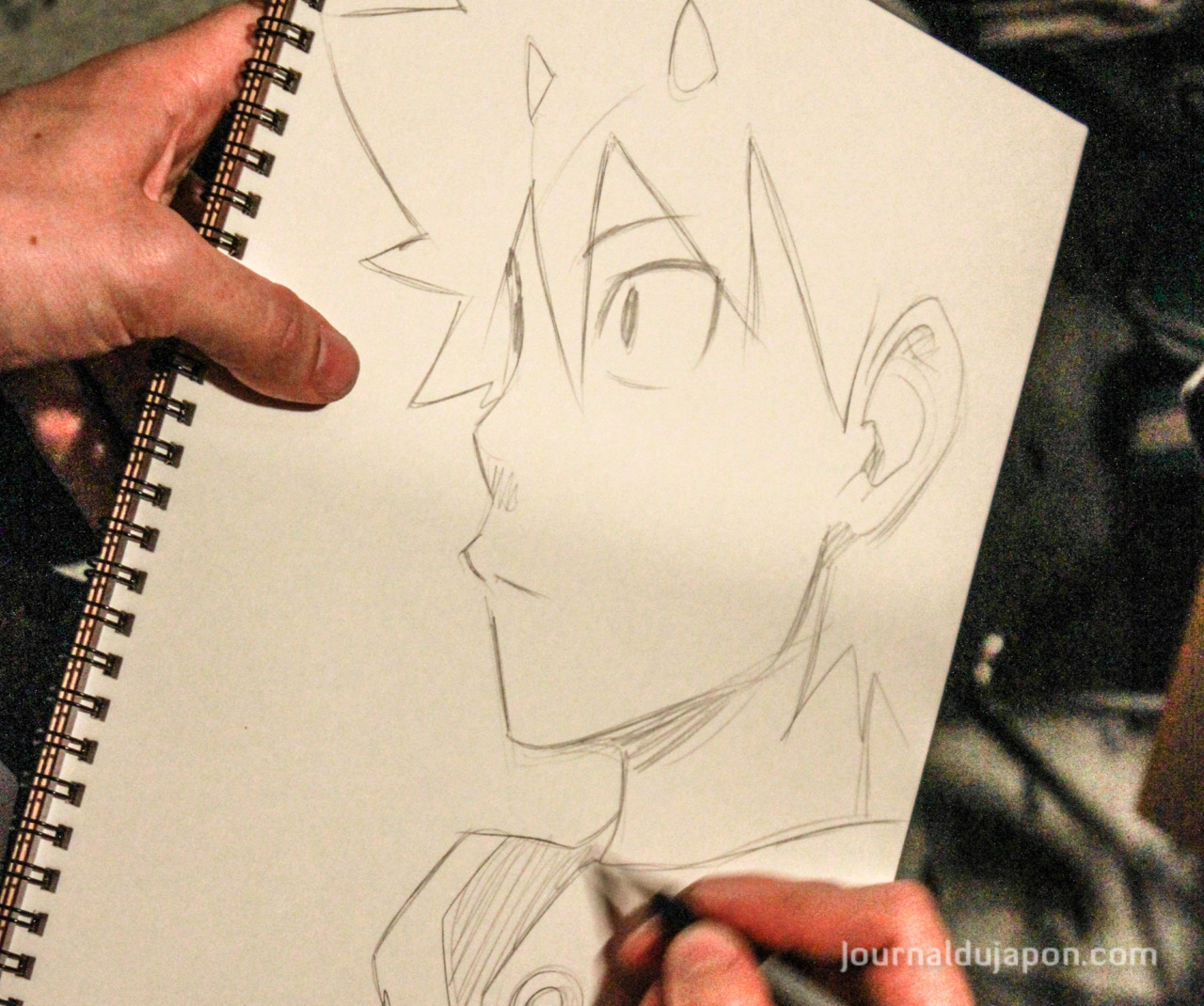 Le papier, la plume japonaise et l’encre… à la mangaka. Ça participe au graphisme et à son charme, c’est ce qui donne ce trait plus japonais.