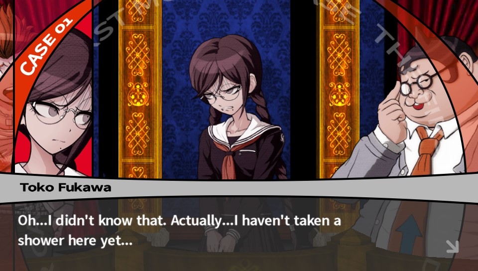 Attention cependant, c’est en anglais. Il faut le parler couramment, d’abord pour le comprendre, mais aussi pour capter l’excellente traduction qui fourmille de petites blagues langagières. Vous risquez de passer la moitié du jeu à prendre des screens (n’oubliez pas, bouton d’accueil plus start, le geste doit être rapide et vigoureux) tant les dialogues sont hilarants et inventifs. Hifumi et Monokuma sont deux grandes sources de pépites. Vous voilà prévenus ! Le doublage japonais est aussi disponible mais l’anglais est très bon, chacun dispose de moult phrases pré-enregistrées et l’intégralité des procès sont doublés. Enfin, est-ce que le jeu est difficile ? Pas vraiment, sinon quelques contradictions peu intuitives à trouver. Est-ce que le basculement de scénario à un certain point ne plombe-t-il pas l’ensemble ? A vous de voir.