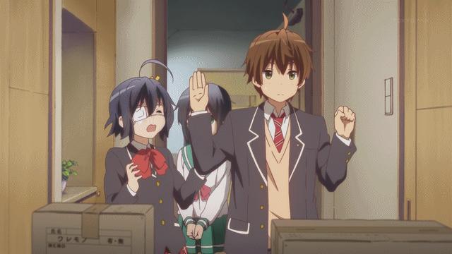 Le début du premier épisode présente ainsi un Yûta reniant fermement le chûnibyô et le passé qui lui est lié. Il en a honte et ne désire qu’une chose, se présenter comme le lycéen le plus normal possible. Autrement dit, il agit moins naturellement que « dans le but de ». À l’opposé et bien que victime du chûnibyô, Rikka croit profondément en des pouvoirs qu’elle n’a pas et nous apparaît dès lors irrémédiablement sympathique du fait de la sincérité qui émane d’elle malgré le fait qu’elle semble totalement à l’ouest. « Rikka et Dekomori [autre possesseur du chûnibyô, ndlr] me paraissent plus naturelles que [toi] » clamera d’ailleurs Kumin à l’encontre de Yûta. À partir de là, tout est dit. Après tout, aucune image ne vient justifier le fait que Yûta puisse avoir honte de ses délires passés (on ne voit jamais ses camarades se moquer de lui, par exemple).Dans le même ordre d’idées, Nibutani pique une crise à chaque fois qu’est mentionnée l’ancienne identité qu’elle s’est créée par le passé, quand bien même personne ne saurait faire le rapprochement et le lui faire remarquer. Comme Nibutani, c’est moins le chûnibyô qui embarrasse Yûta que l’image qu’il peut renvoyer aux autres. Très vite, la relation qu’il entretient avec Rikka inverse donc les rôles du seul point de vue du spectateur : si Yûta semble être rationnel et Rikka dans le déni, il s’avère très vite qu’il s’agit très exactement de l’inverse.