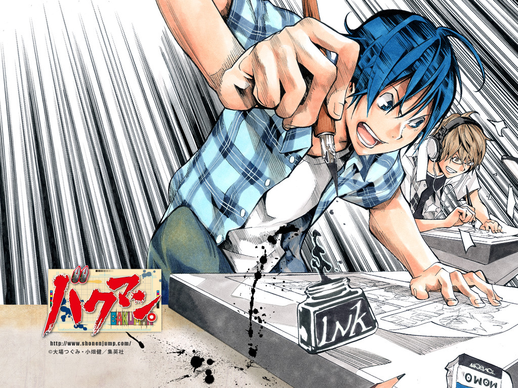 Depuis 2010 Bakuman symbolise le retour du célèbre duo d’auteurs ayant officié sur Death Note : Takeshi Obata (dessin) et Tsugumi Ôba (scénario). Créé en 2008 pour le shônen Jump, le titre rencontre un succès immédiat à l’instar de son grand frère en prenant la forme d’un documentaire sur l’univers de l’édition de manga. Centré sur le département de la Shueïsha, les mangakas font le pari fou de faire un shônen sans action et sans une goutte de sang … Après dix-huit tomes et quatre ans de publication au Japon, regardons de plus près pour voir si cela fonctionne.