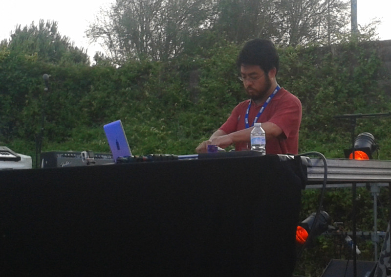Mais pas le temps de tergiverser. Le premier concert va commencer. Yosi Horikawa a la lourde tâche d’ouvrir le festival devant un public encore clairsemé – il est 19 h 00 et on compte une petite centaine de festivaliers sur le site pour le moment. Cependant, le DJ originaire d’Osaka ne se dégonfle pas et nous livre un set laptop impeccable. Sa musique, mêlant bruits du quotidien mis en boucle et beats électroniques, envoûte.
