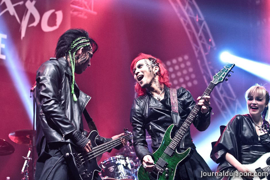 Très vite, les notes de leur musique hybride et saturée ont envahi la salle et heurté l’ouïe du public, grâce à l’Industrial Rock japonais aux arrières goûts de groupes de rock américains qui ont fait l’éducation musicale du groupe.