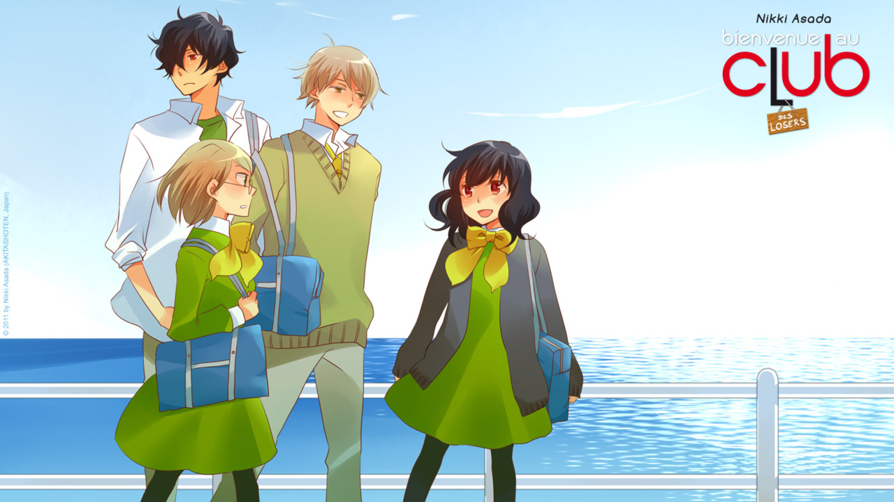 Bienvenue au club, donc, nous raconte l’histoire de Nima, une jeune lycéenne malchanceuse en amour, ainsi que de ses trois camarades de classe, tous ayant leur lot de misères sentimentales. Ils forment à eux quatre un club visant à étudier, si tant est que cela soit possible, les relations amoureuses des autres lycéens pour en comprendre le fonctionnement. Nikki Asada nous avoue que « seulement trois chapitres étaient prévus au départ , mais devant l’engouement des lecteurs face aux péripéties de Nima, les éditeurs ont donné leur aval pour prolonger la série. » Aujourd’hui, huit tomes sont parus au Japon et deux sont sortis en France chez Akata, le prochain étant prévu le 28 août 2014.